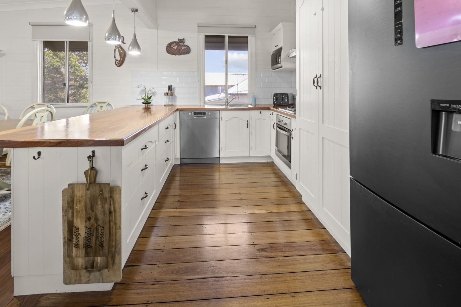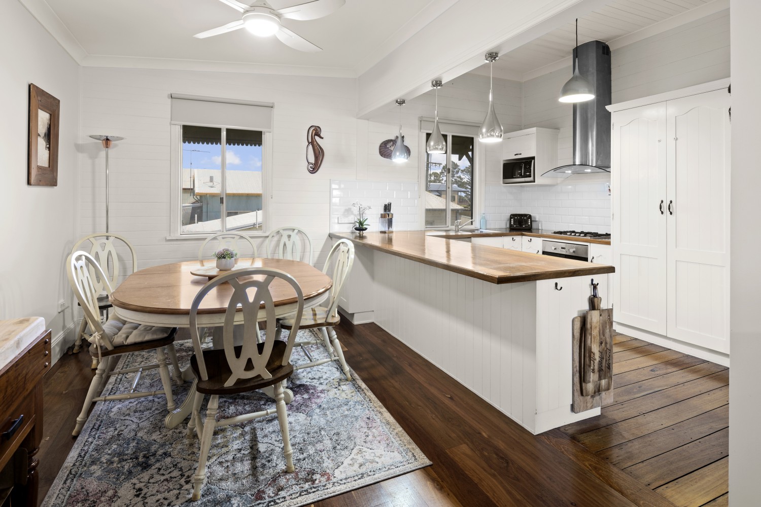 Walk up the beautiful timber staircase to the large open-plan Lounge, Dining and kitchen .