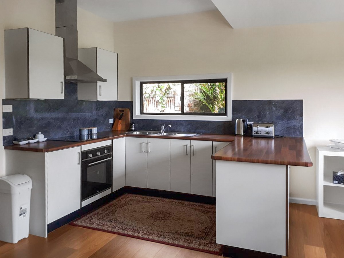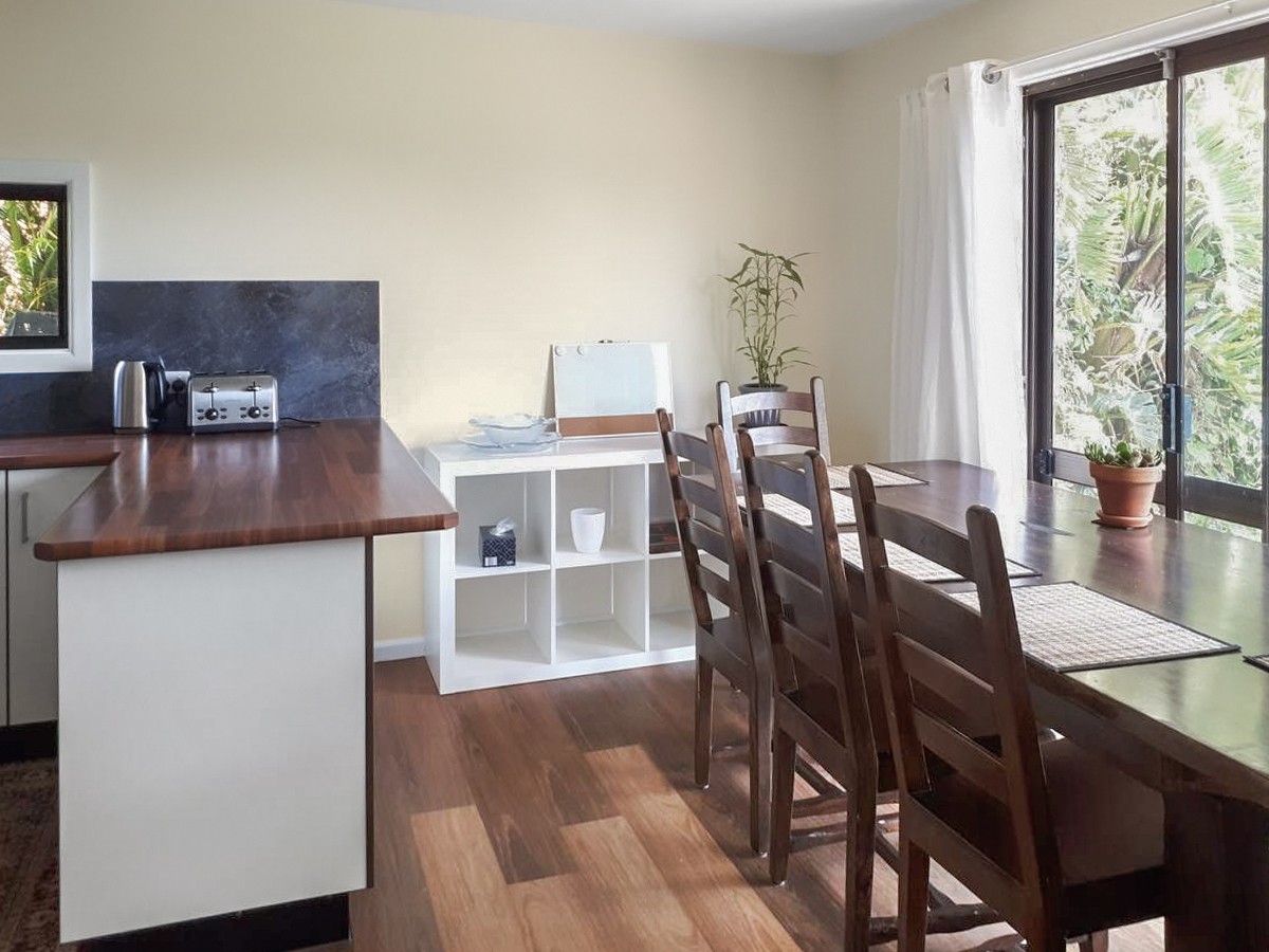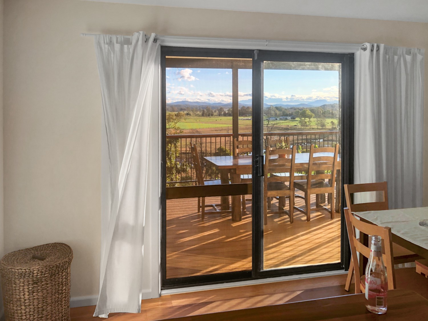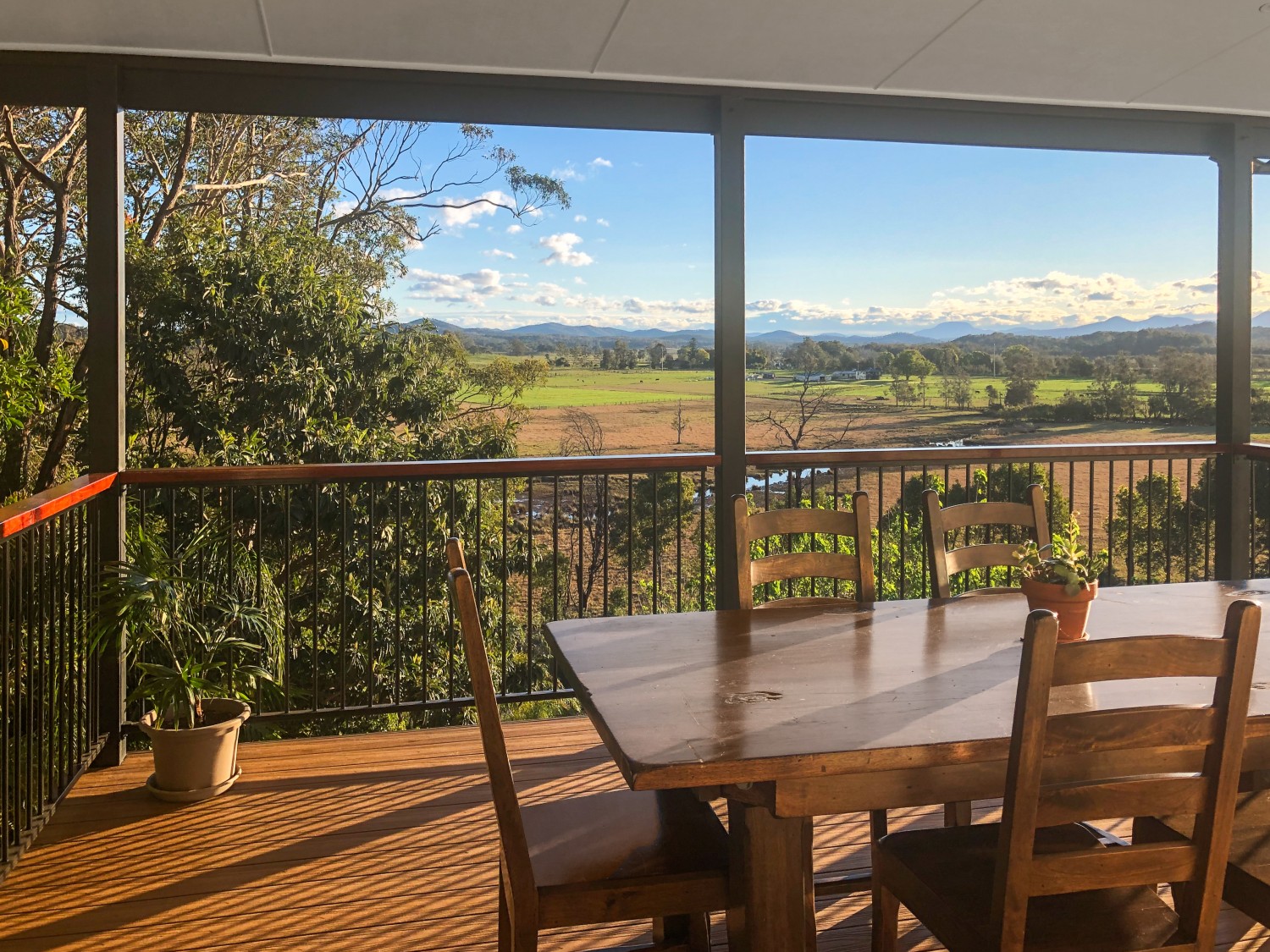 The owners have recently finished renovating, including a stylish new kitchen and open plan dining, which opens out onto a large undercover "eco wood" deck with stunning views over farmland, and out to the distant mountains.