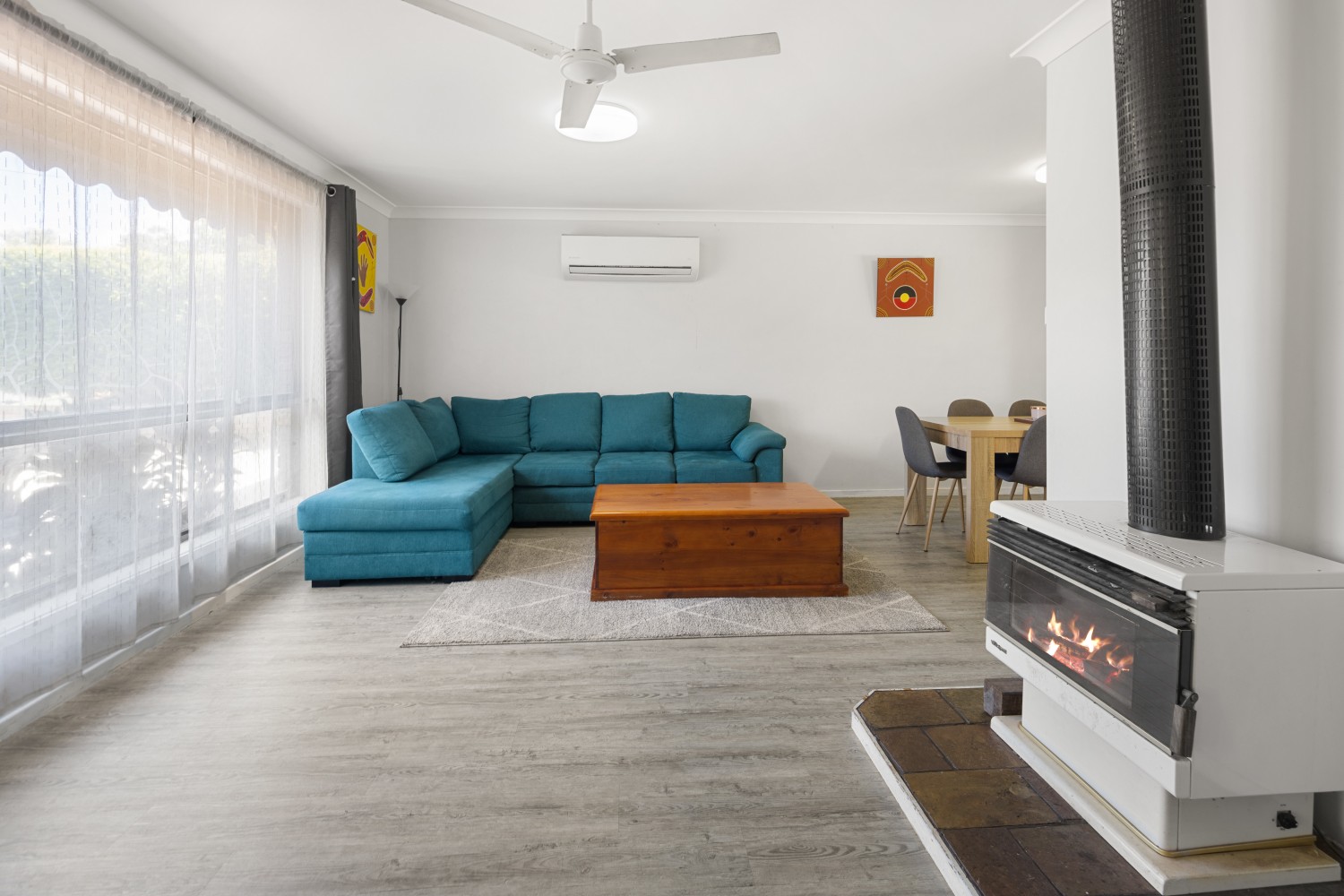 The living area is large and filled with natural light, it is airconditioned and there is a cosy fire for the colder months.