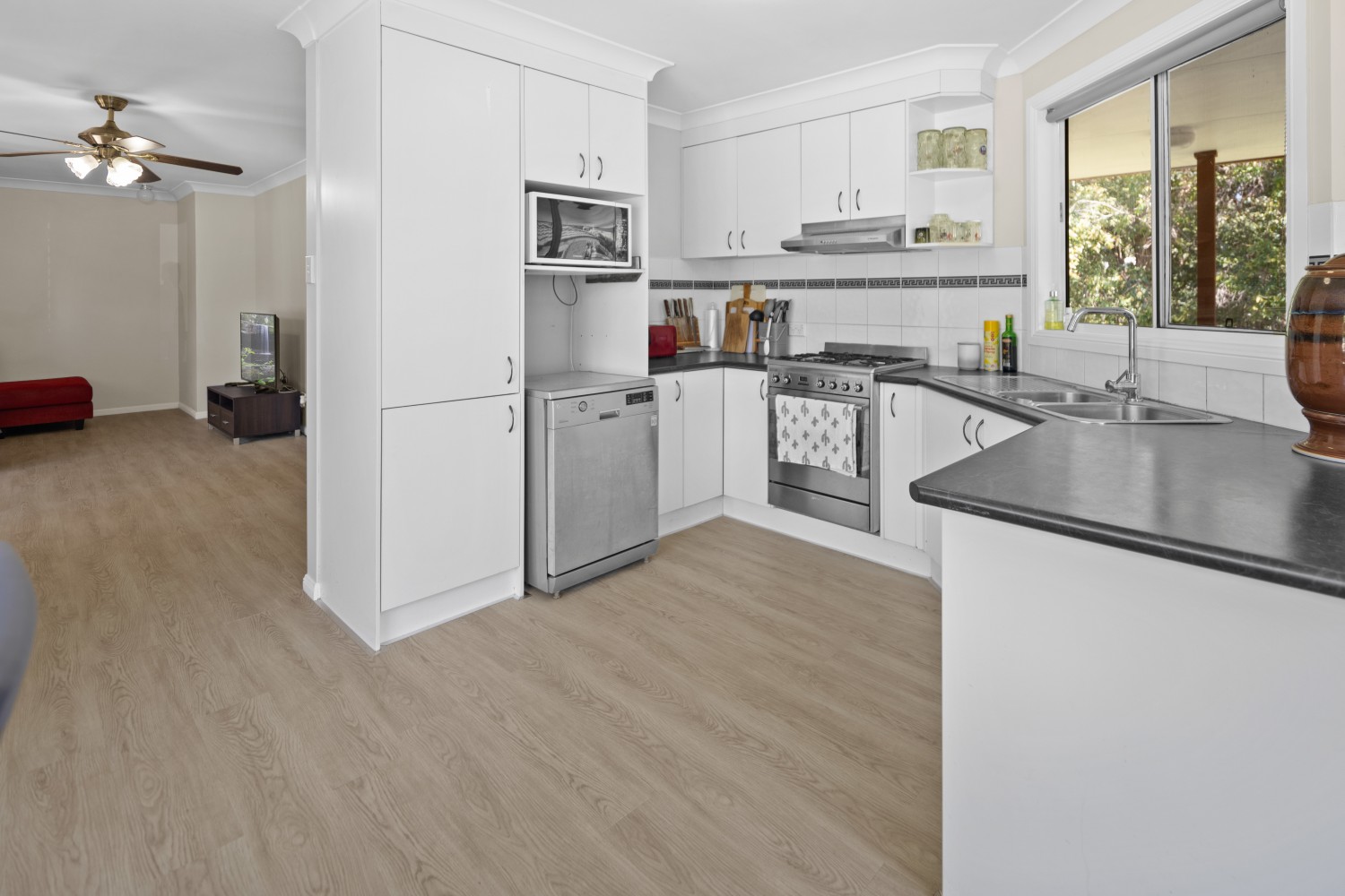 Welcome to this inviting house located at 1 Buringa Close in the picturesque area of Valla. Perfectly positioned to combine the best of both worlds, this property offers a peaceful lifestyle with the convenience of being just a 20-minute drive from the bustling hub of Coffs Harbour. With three spacious bedrooms, each featuring built-in robes and lovely leafy views, this home provides a comfortable living option that promises significant potential for future improvements. The wide hallway includes a linen cupboard, ensuring ample storage and easy accessibility throughout the home.