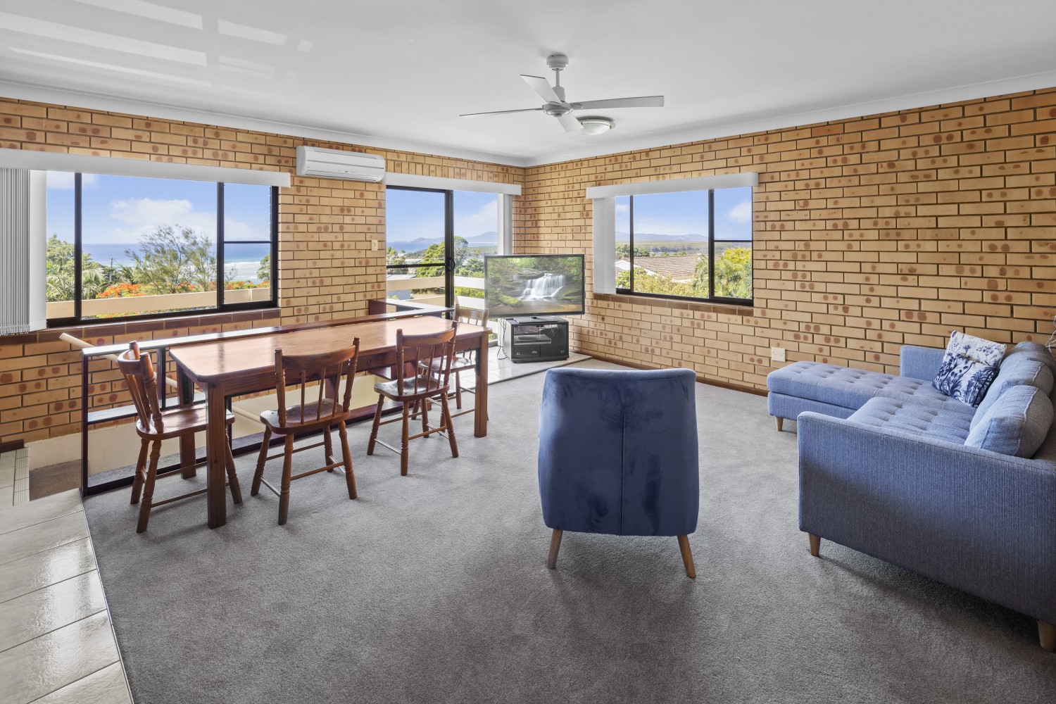 Each bedroom has built in robes, with the main and the second enjoying ocean views. The third bedroom has its own balcony.
