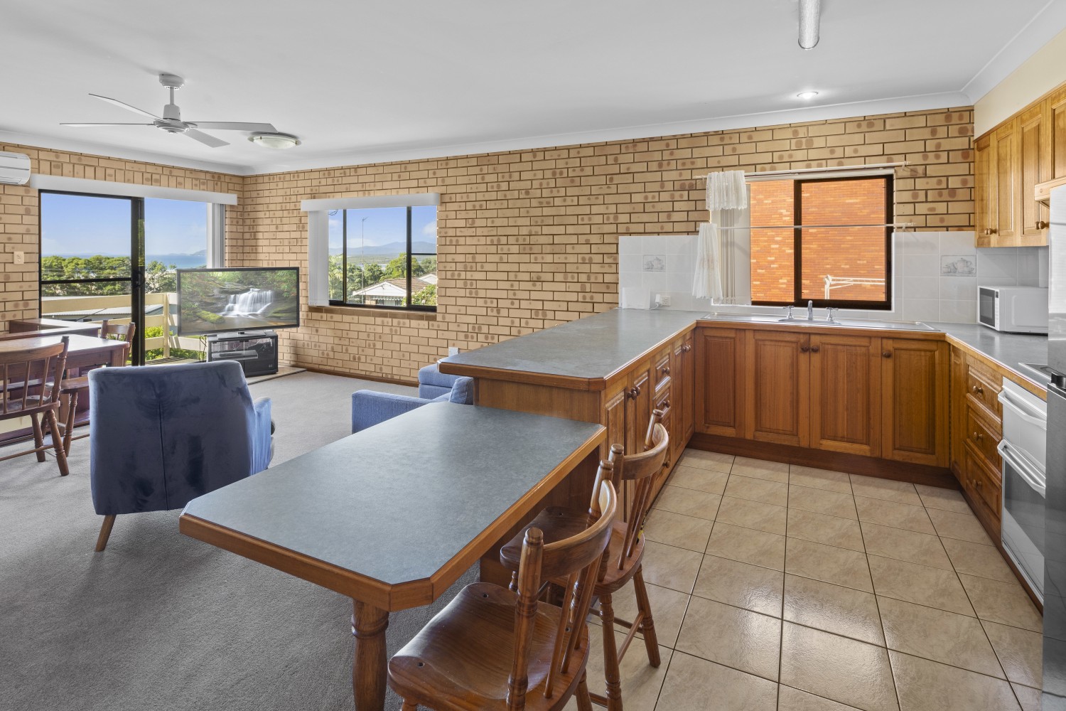 Upon entry you find yourself in the heart of the home, with open plan design featuring modern kitchen with loads of storage, good sized lounge and dining, through the sliding glass door and you are on the balcony overlooking the Nambucca River and the Ocean, right down to South West Rocks.
