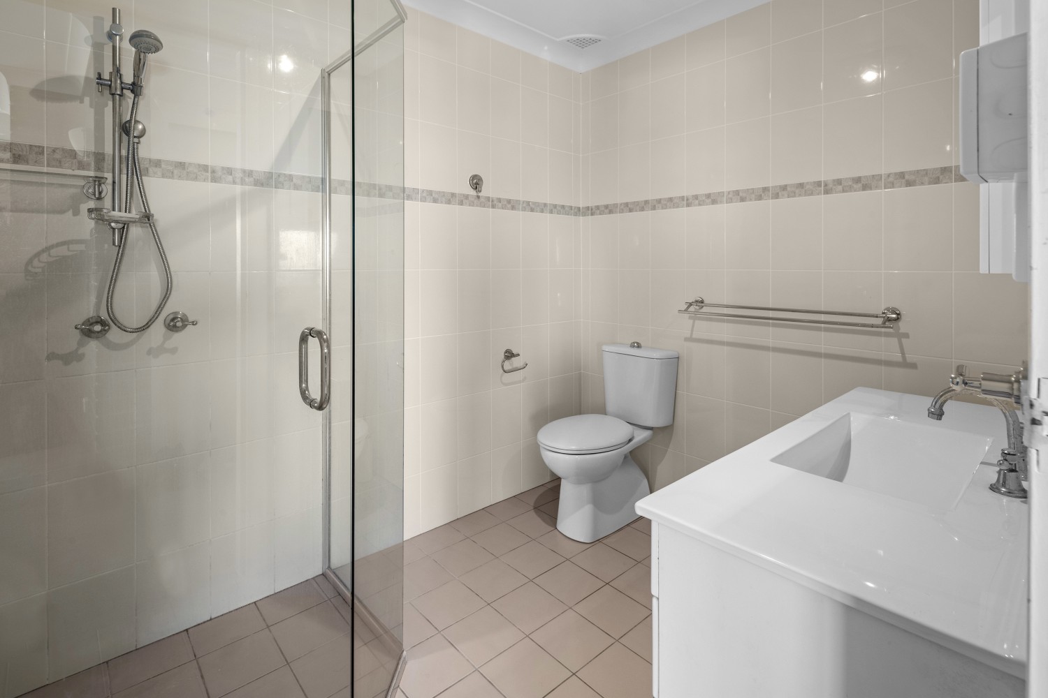 The bathroom was fully renovated a few years ago, with a lovely modern design.