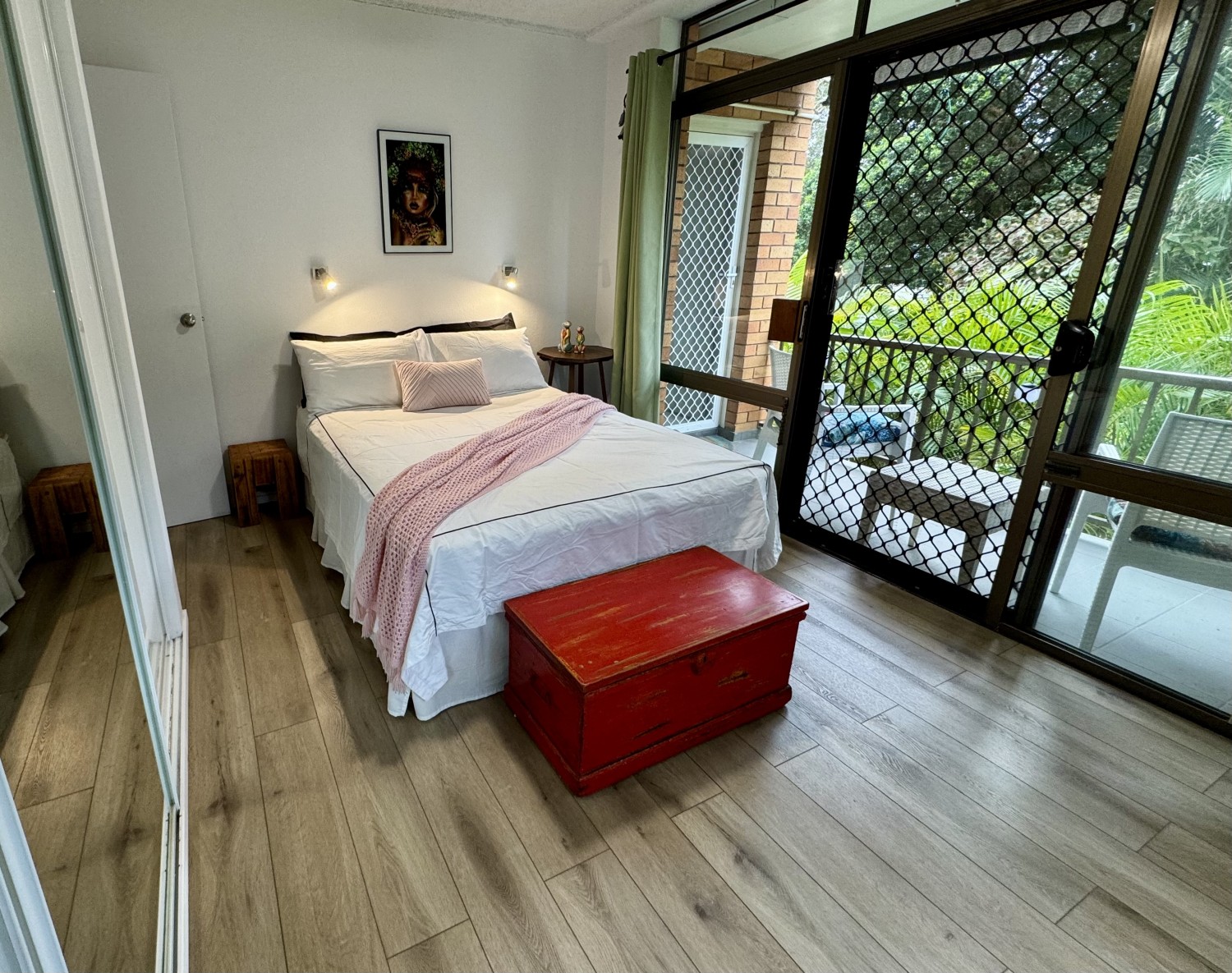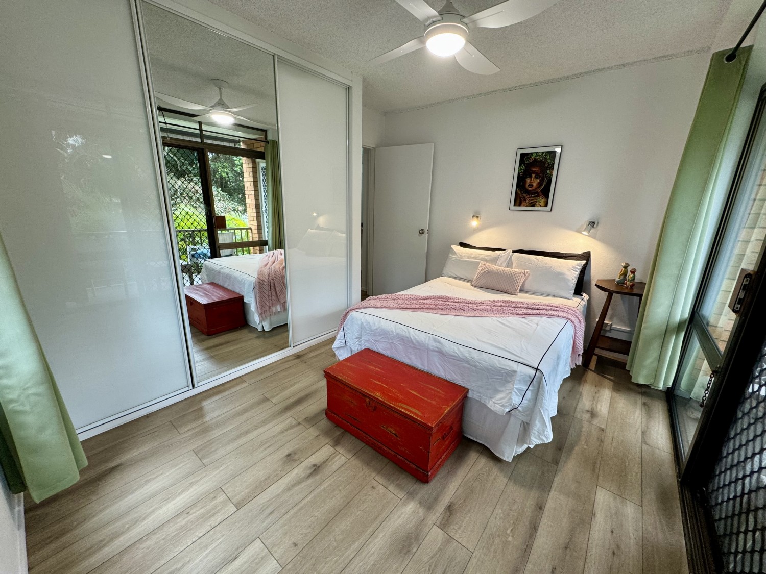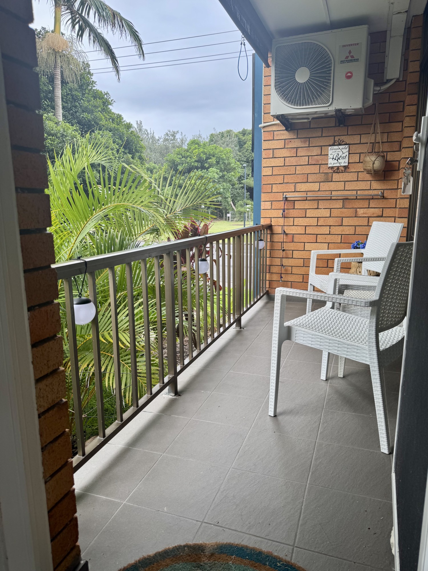 Designed for ultimate comfort, the two bedrooms are positioned at opposite corners of the unit, ensuring privacy and peaceful retreat. The master bedroom opens onto the inviting balcony, where you can unwind and soak in the serene surroundings. Both bedrooms feature large built-in robes, and the sleekly renovated bathroom and separate toilet sit perfectly between them for added convenience.