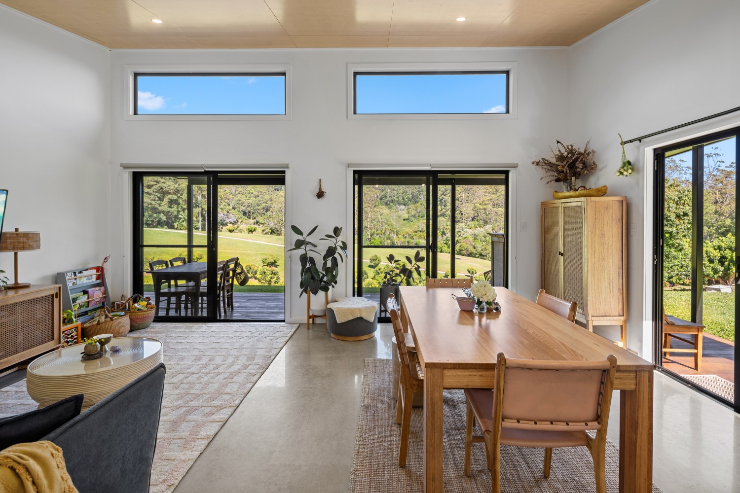 * Light-filled interiors with abundant windows framing the natural surrounds