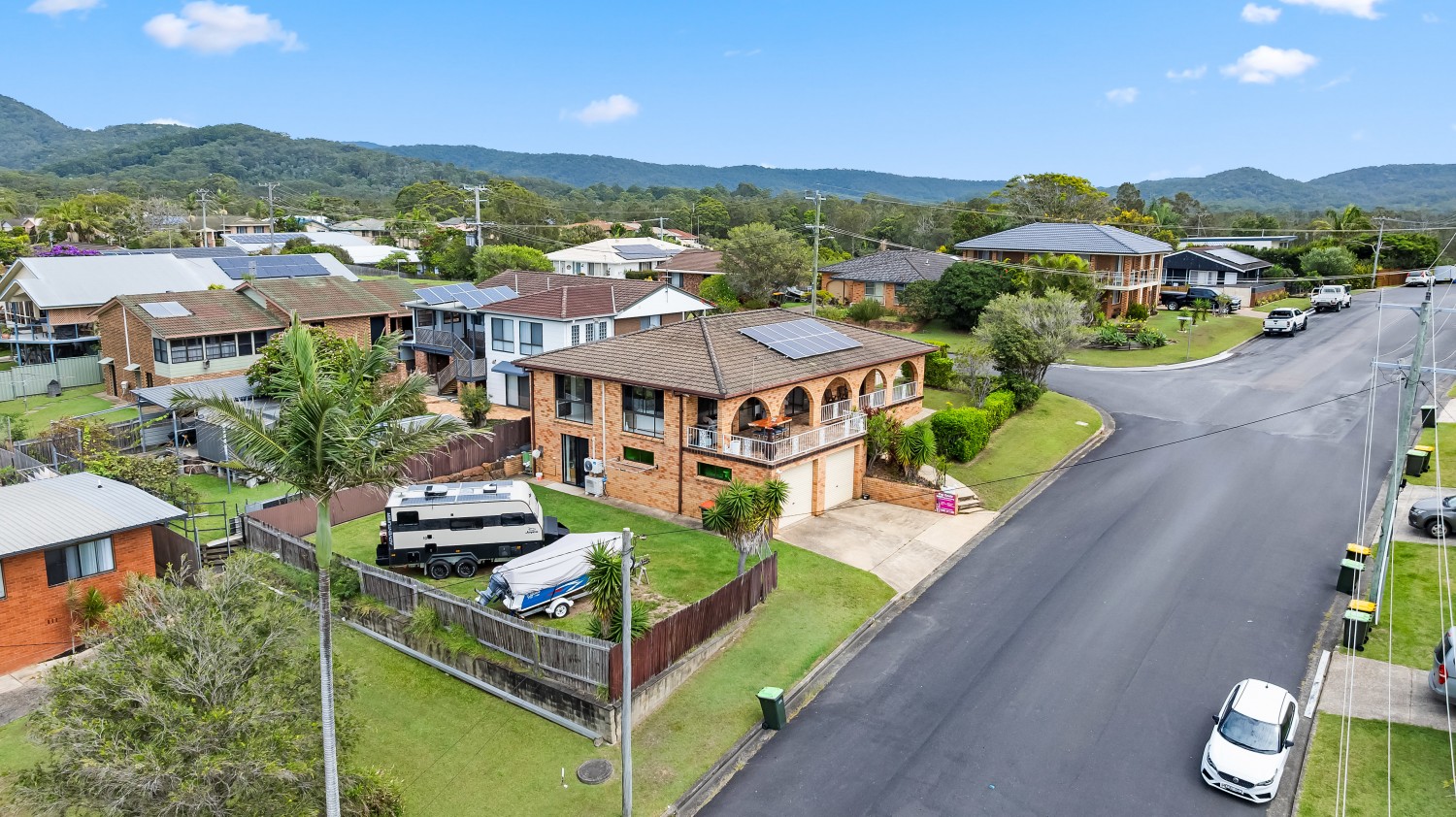 Positioned on a desirable corner block in Scotts Head, this high-set brick residence capturing ocean and mountain views, delivering the perfect blend of quality, space, and relaxed coastal living.